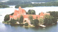 к юго-западу от Вильнюса находятся Тракайские озера, общее число которых — 61. На узком полуострове лежит город Тракай. Он невелик, но в истории Литвы занимает особое место — как бывшая столица Великого княжества Литовского и один из главных оборонных пунктов в борьбе против крестоносцев. В XIV в. князь Кястутис построил на полуострове замок, а его сын в конце XIV в. возвел на острове озера Гальве еще более неприступную для крестоносцев крепость. Тракайский замок — уникальный ансамбль литовского оборонного зодчества, единственная островная крепость в Восточной Европе.