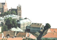 Сейчас Вильнюс красив сочетанием старого и нового. Его историческое ядро — Сянаместис (Старый город) с лабиринтом узеньких улиц, множеством исторических, архитектурных памятников. Сохранились руины замка Гедиминаса, у подножия горы — площадь, носящая его имя. Знаменитый кафедральный собор XVIII в. — творение известного архитектора Лауринаса Сто-уки-Гуцявичюса. Рядом находится Историко-эт-нографический музей. Среди архитектурных памятников выделяется шедевр готики XV — XVI вв. — костел Анны. Эта самая красивая готическая постройка в Литве поражает легкостью линий, устремленными ввысь шпилями. С костелом Анны единый ансамбль составляет расположенный рядом Бернардинский костел.