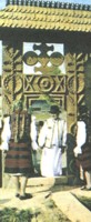Сельские ворота, украшенные деревянной резьбой. Обработка дерева —