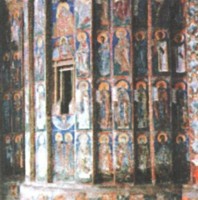 Одна из знаменитых сельских церквей. Фасад расписан в XVI в. Темы