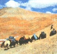 Тропа от главного города шерпов Намче-Базара ведет к вершине хребта Лобуджи-Ист. Большая часть крупного рогатого скота используется как тягловая сила.