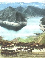 Нурекское водохранилище (площадь — 98 км2, средняя глубина — 107м) образовано плотиной Нурекской ГЭС на реке Вахш.