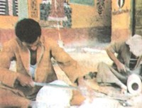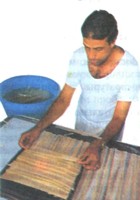 В «Городке фараонов» рабочий изготовляет папирусные листы.