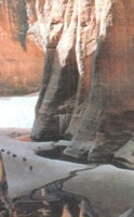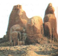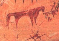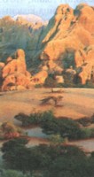 Погонщики ведут своих верблюдов между скалами Аршен к водоемам. Иногда во время грозы просыпается река, которая была частью системы тропических рек и прорезала эти ущелья.