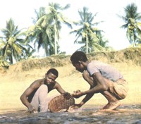 На побережье Гвинейского залива местные жители собирают ракушки.