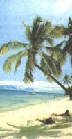 Ажурные тени пальм на удивительно чистых прибрежных песках рассеивают луни жаркого тропического солнца.